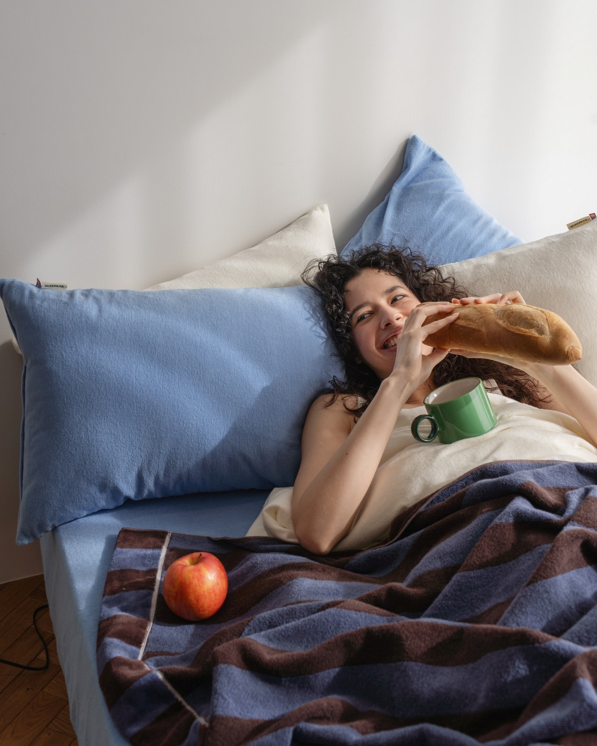 140 x 200cmの大判サイズで、リラックスタイムの利用はもちろん、就寝時の「もう一枚」としても活躍。
