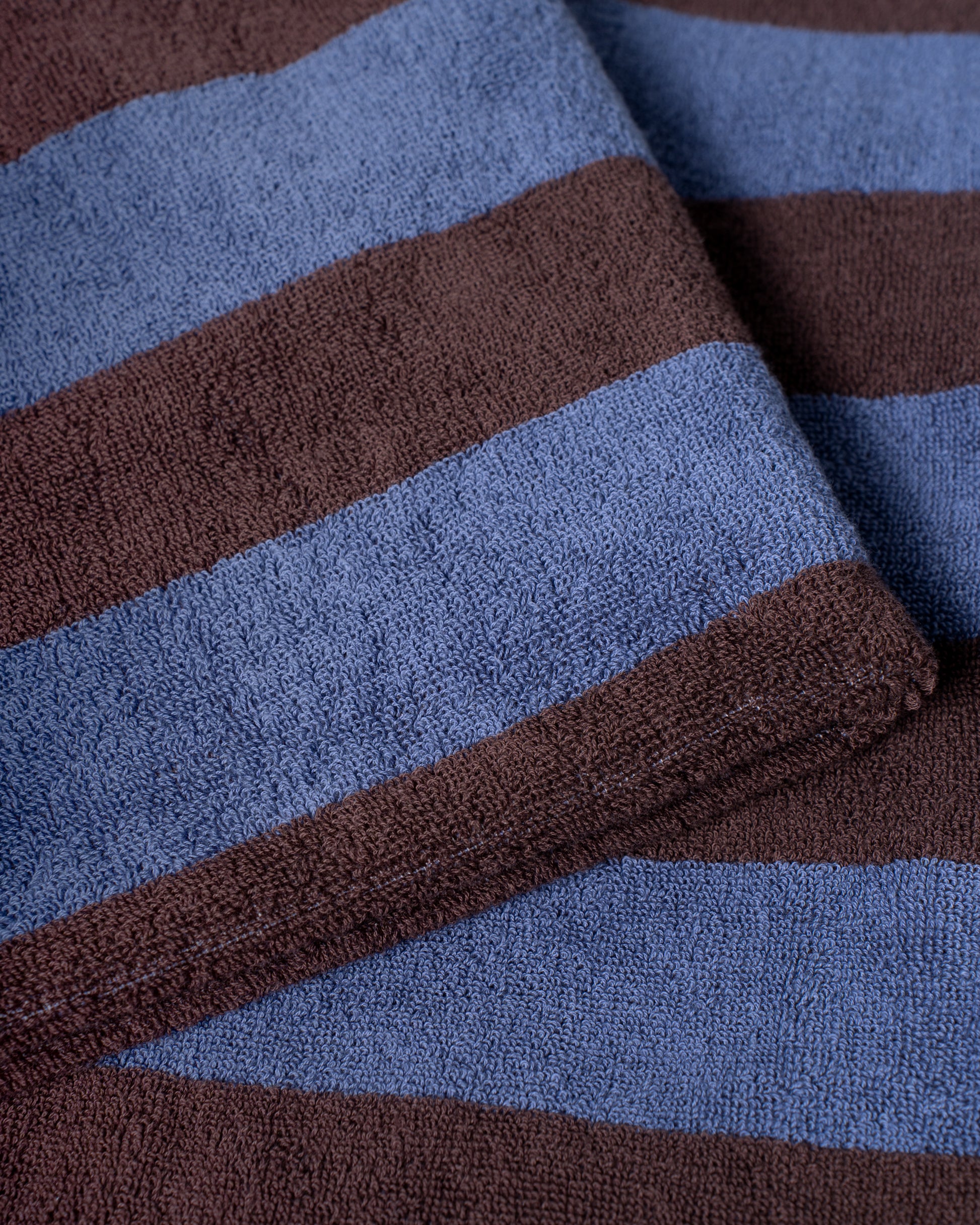Imabari Towel Stripe Blanket Coffee Brown and Midnight Blue Stripes